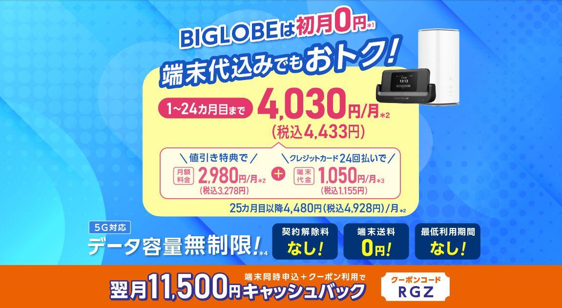 2. おすすめ② 中古端末で最安になる「BIGLOBE WiMAX +5G」